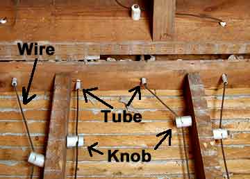 Knob and tube wiring is a system that was the best technology had to offer in its day, however, those days have long since gone. Knob and tube wiring is the original wiring method used from the late 1800's until approximately 1947. Knob and tube electrical wiring involved stringing individual insulated electrical wires across porcelain insulators ("knobs") which were nailed to the surface of wooden framing members. When electrical wires needed to actually pass thru wooden framing members, the electrical wires were strung through porcelain insulators called "tubes" which protected the wires.